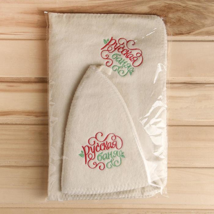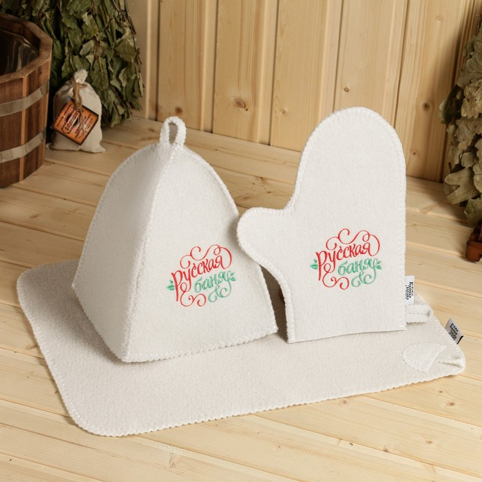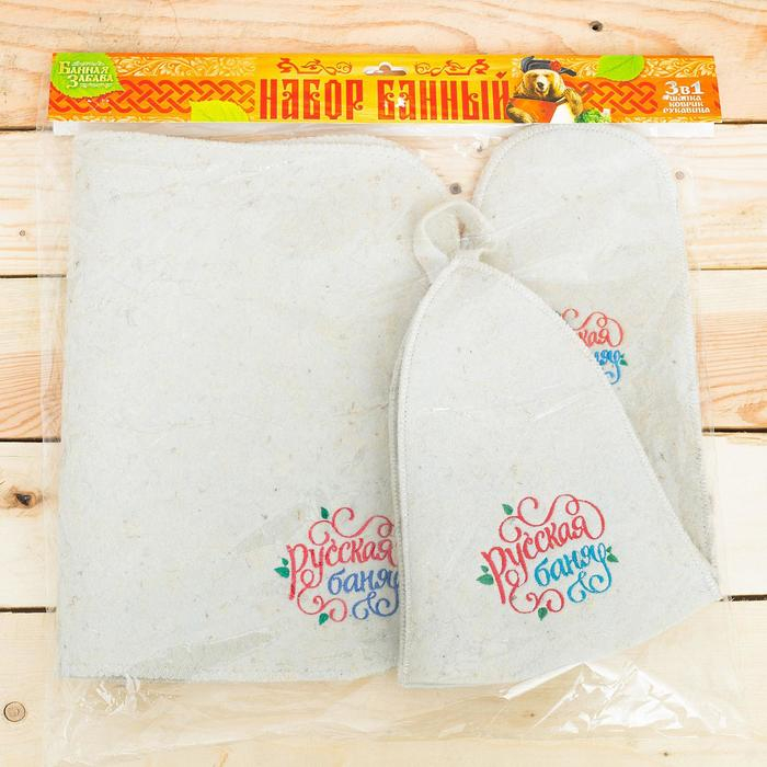 Банный набор "Русская банька только для русской души": шапка, коврик, рукавица