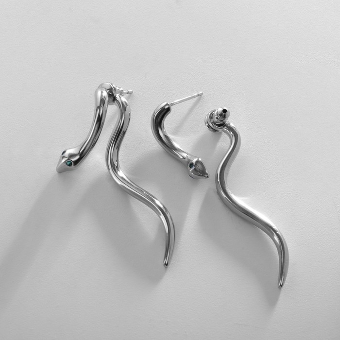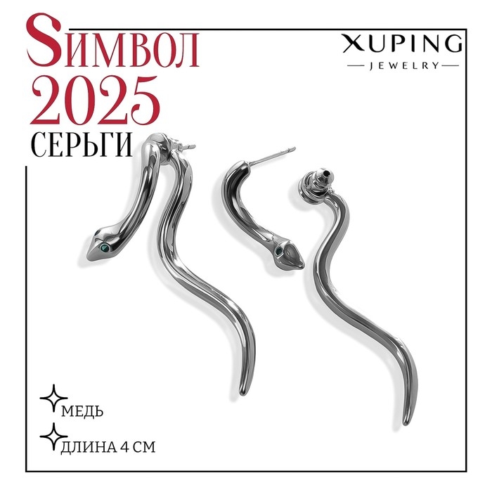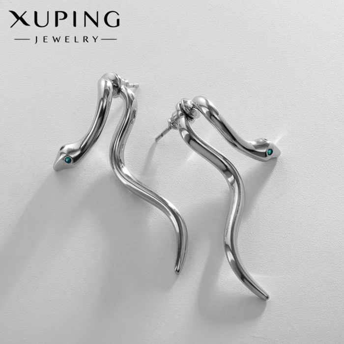 Серьги металл XUPING змейка, цвет белый в серебре