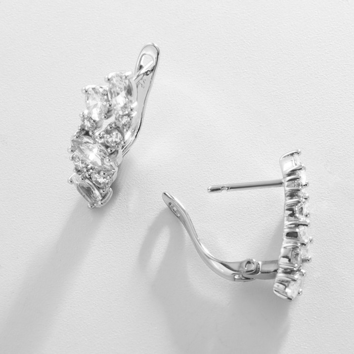 Серьги со стразами XUPING листья, цвет белый в серебре