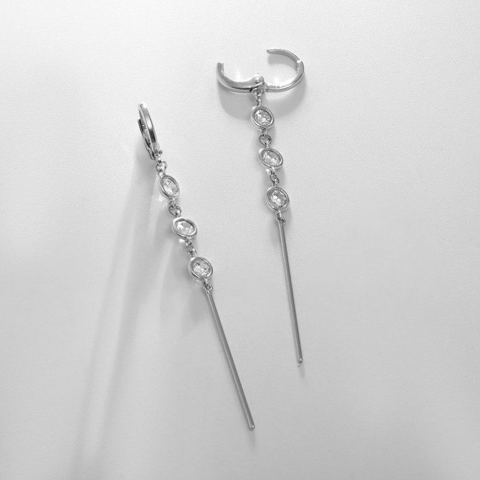 Серьги висячие со стразами «Капли» дорожка, цвет чёрный в серебре, 6,2 см