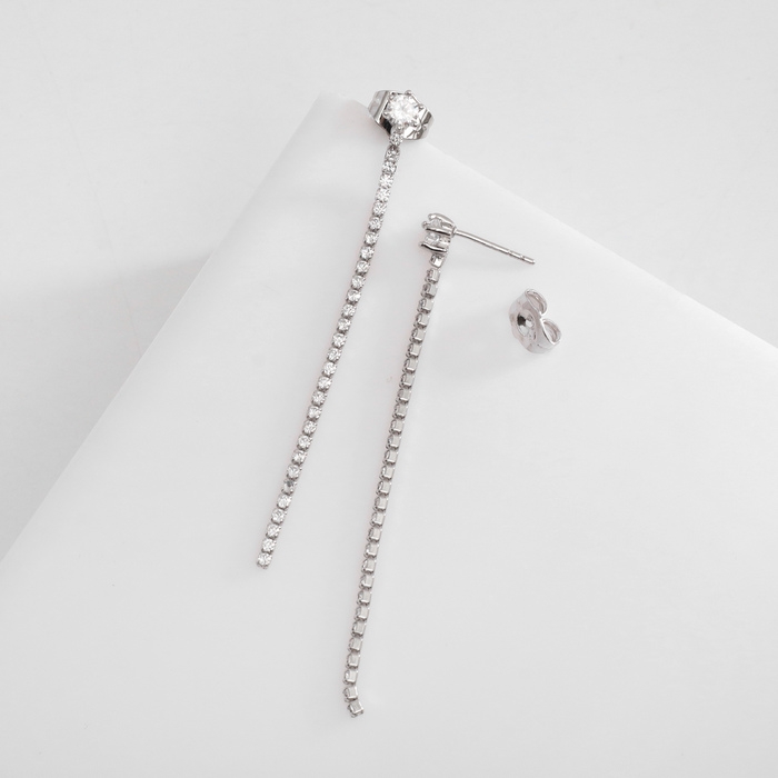 Серьги со стразами XUPING висячие, эскиз, цвет белый в серебре