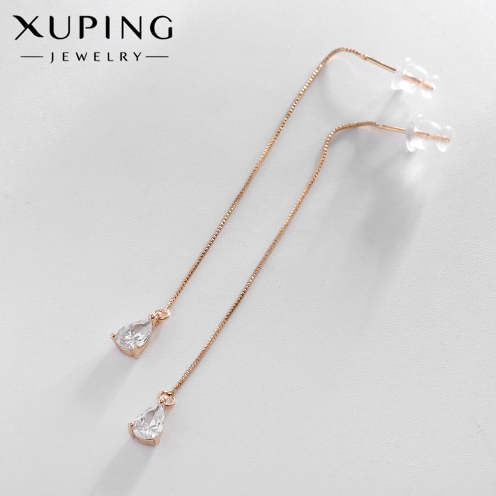 Серьги висячие со стразами XUPING протяжки, блеск, цвет белый в розовом золоте