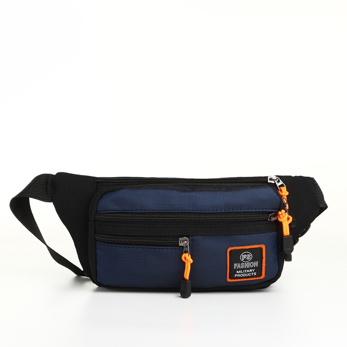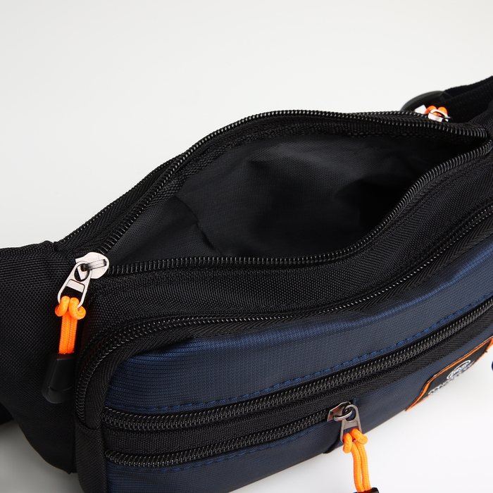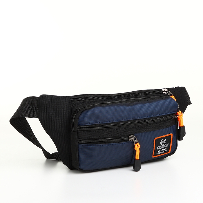Поясная сумка на молнии, 3 наружных кармана, цвет синий/чёрный