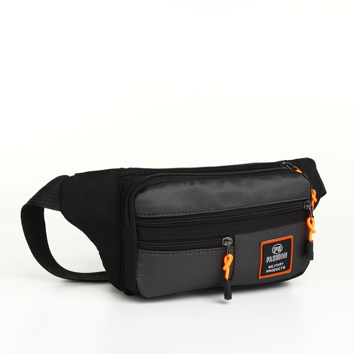 Поясная сумка на молнии, 3 наружных кармана, цвет серый/чёрный