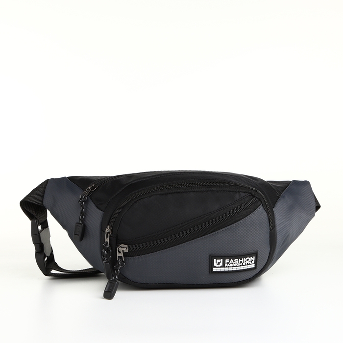 Поясная сумка на молнии, 3 наружных кармана, цвет серый/чёрный