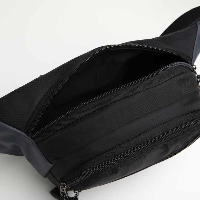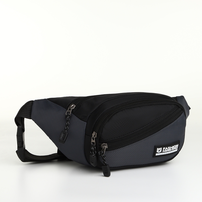Сумка поясная на молнии, 3 наружных кармана, цвет чёрный