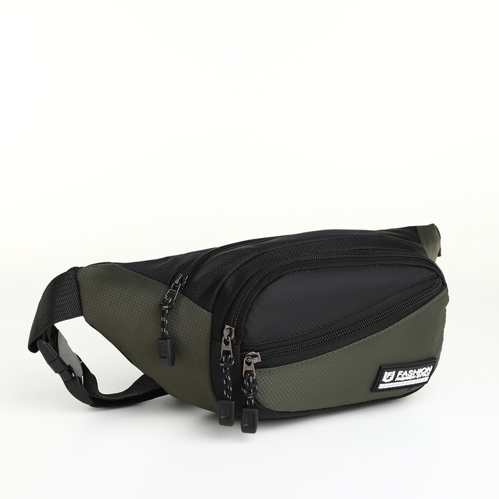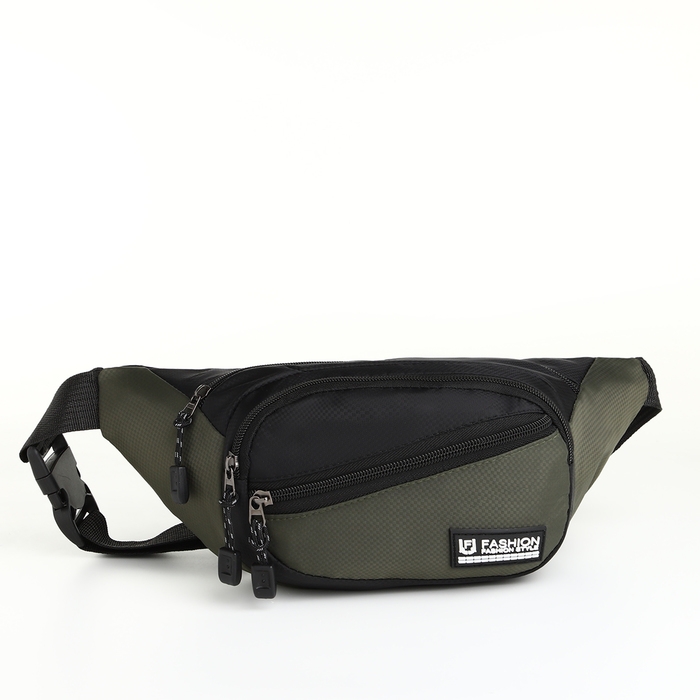 Поясная сумка на молнии, 3 наружных кармана, цвет зелёный/чёрный
