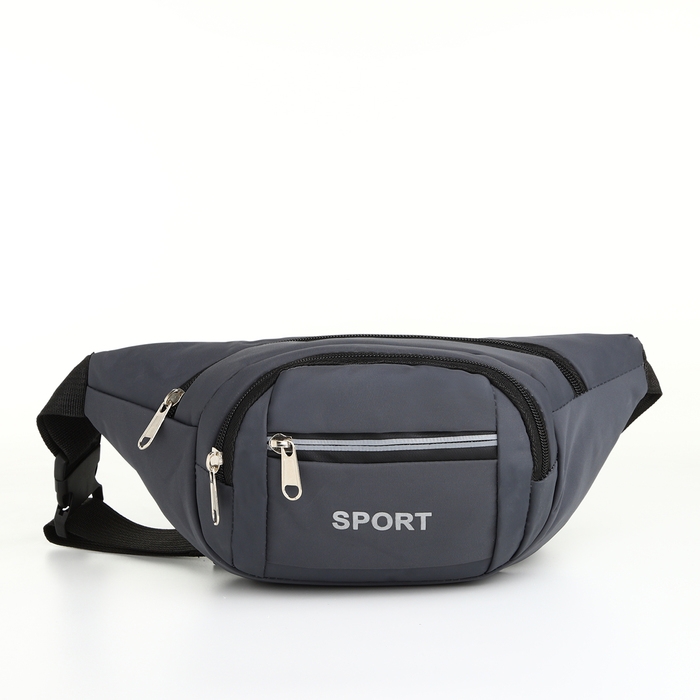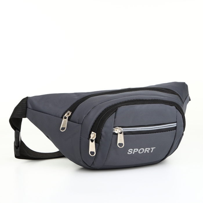 Поясная сумка на молнии, 3 наружных кармана, цвет серый