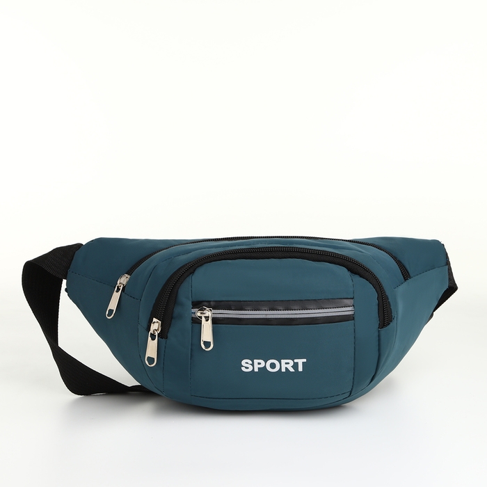 Поясная сумка на молнии, 3 наружных кармана, цвет зелёный
