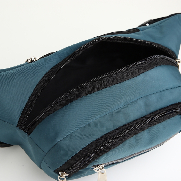 Поясная сумка на молнии, 3 наружных кармана, зацеп на бедро, цвет чёрный