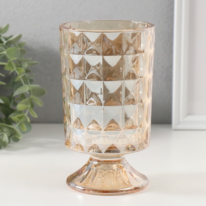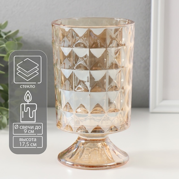 Подсвечник стекло на 1 свечу "Ромбы. На ножке" d=9 см прозрачный карамель 10х10х17,5 см