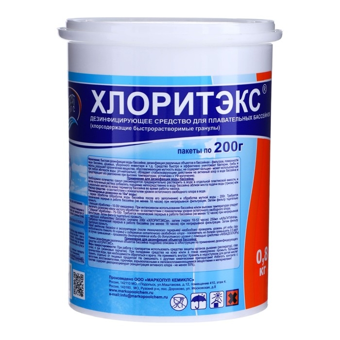 Дезинфицирующее средство "Хлоритэкс" для воды в бассейне, 800 гр