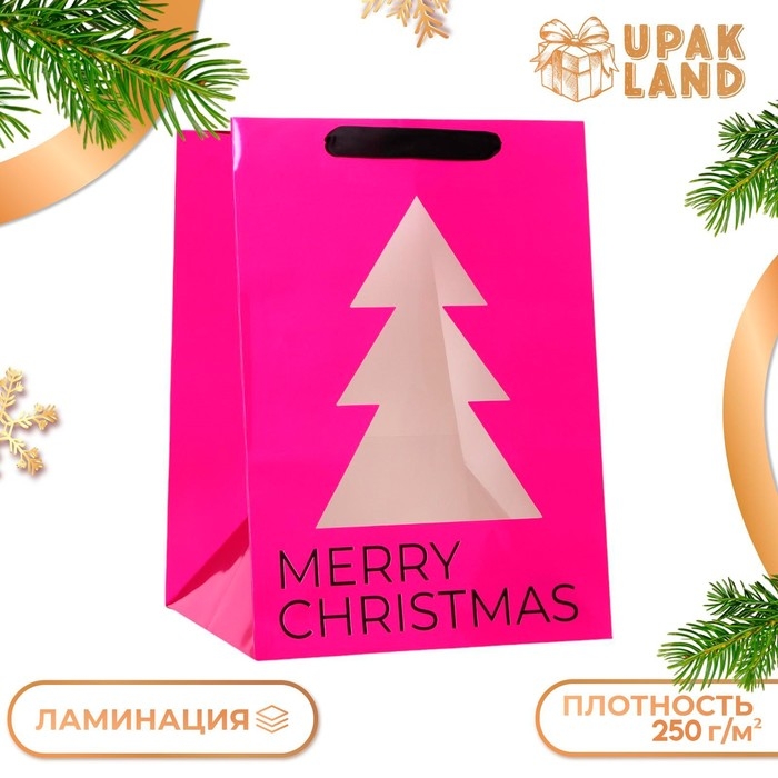 Пакет подарочный новогодний с окном, метализированный, "Ёлка", 32 х 32 х 45 см. Новый год