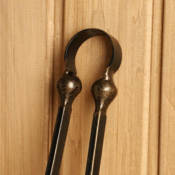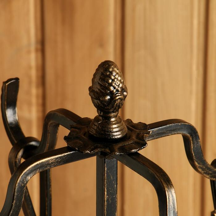 Каминный набор КН-6-3 кованый "Спирали", цвет бронза, 4 предмета: кочерга, щипцы, совок, метёлка 3