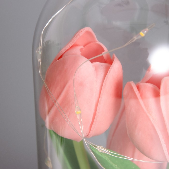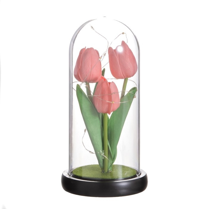 Ночник колба «Тюльпаны» LED 3хААА розовый 10,5х10,5х22см