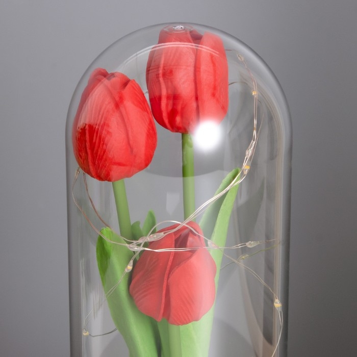 Ночник колба «Тюльпаны» LED 3хААА красный 10,5х10,5х22см