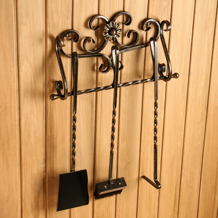 Каминный набор КН-6-5 настенный, кованый, цвет бронза, 3 предмета: кочерга, совок, метёлка