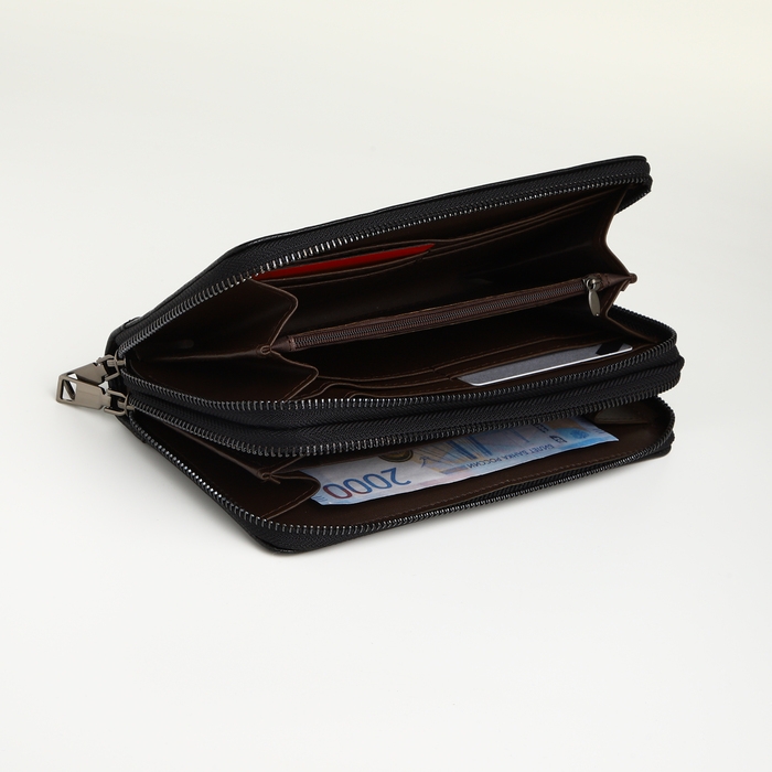 Портмоне-клатч мужской на молнии TEXTURA, цвет чёрный