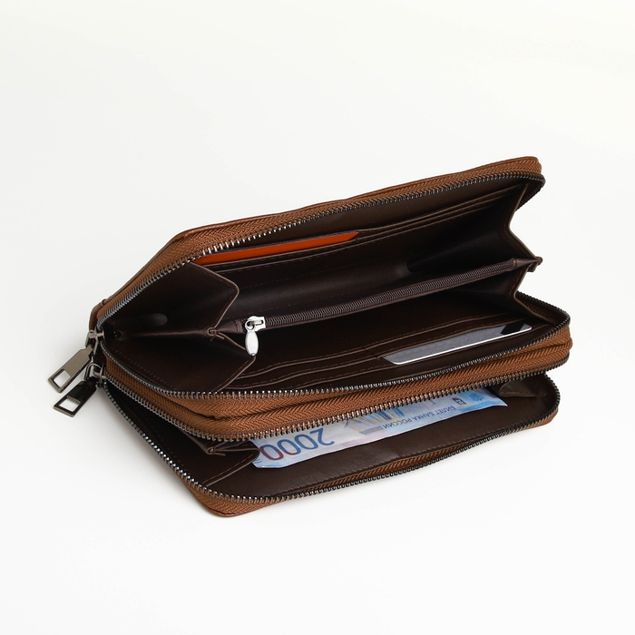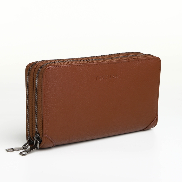 Портмоне-клатч мужской на молнии TEXTURA, цвет коричневый