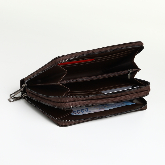 Портмоне-клатч мужской на молнии TEXTURA, цвет коричневый