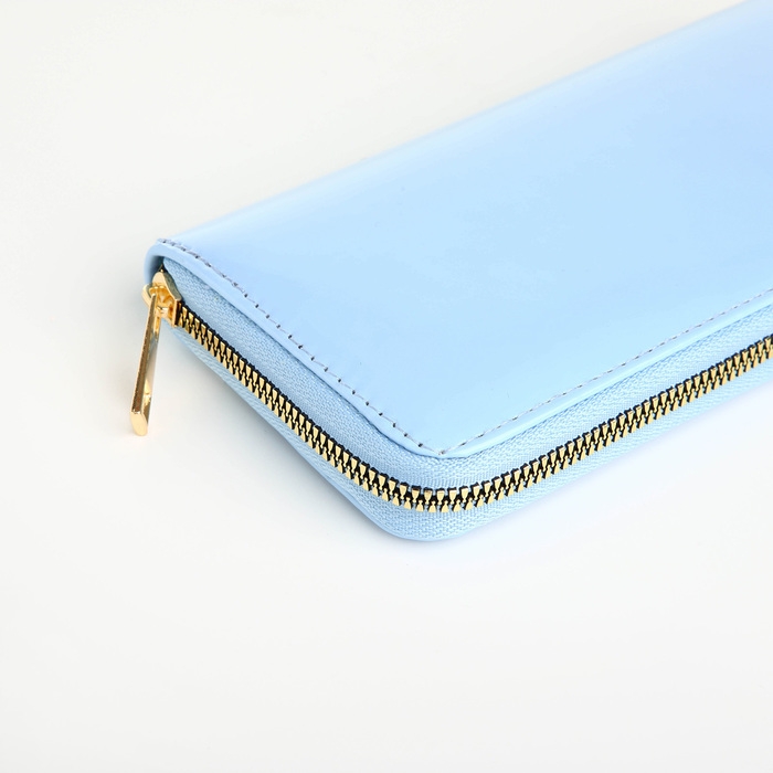 Кошелёк женский на молнии, лакированный, цвет голубой