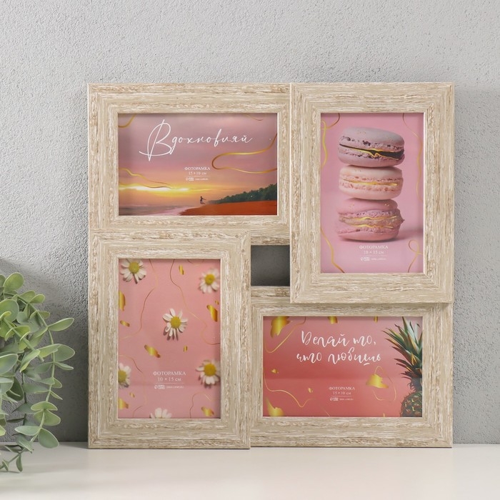 Фоторамка пластик на 4 фото 10х15 см "Аврора" серое дерево 31,5х31,5 см