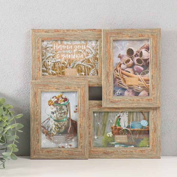 Фоторамка пластик на 4 фото 10х15 см "Аврора" цвет натуральное дерево 31,5х31,5 см
