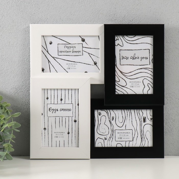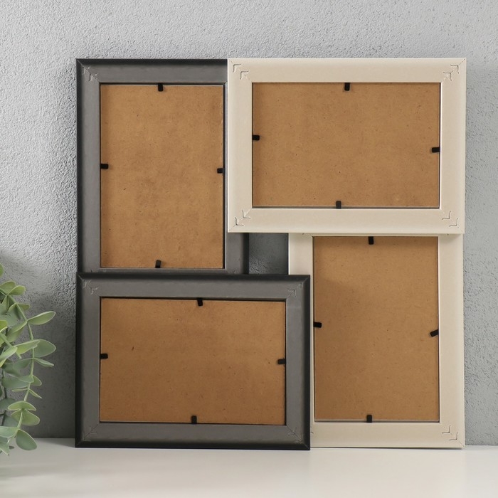 Фоторамка пластик на 4 фото 10х15 см "Аврора" черно-белая 31,5х31,5 см
