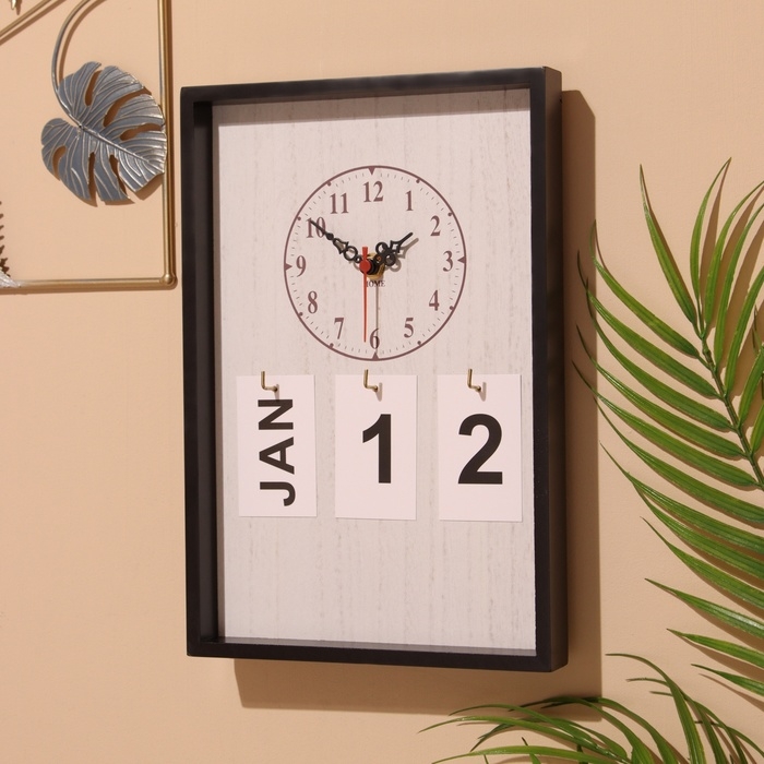 Сувенир вечный календарь подвесной с часами, дерево, 2х20х30 см, цв. чёрный