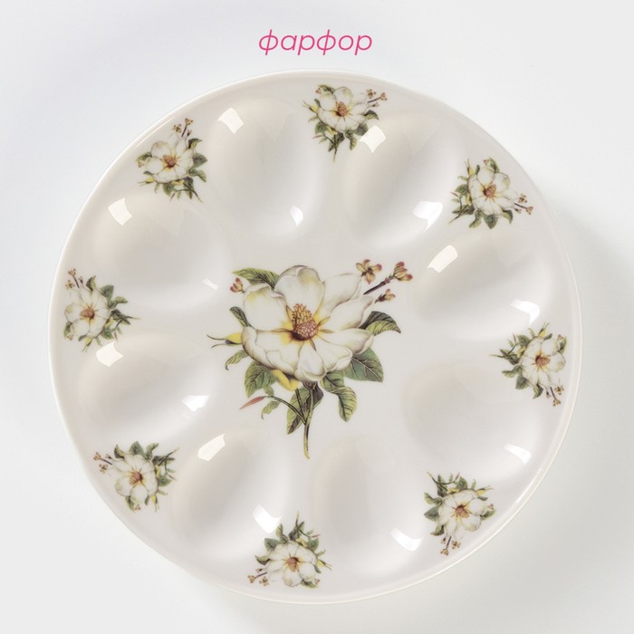 Подставка фарфоровая для яиц Доляна «Цветы шиповника», d=20 см