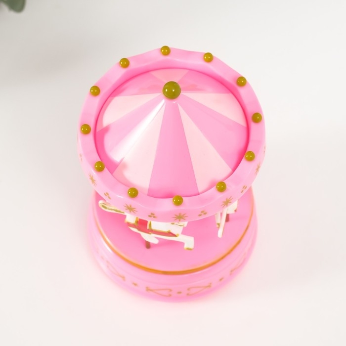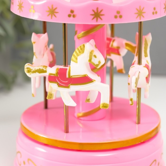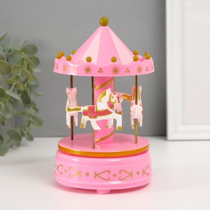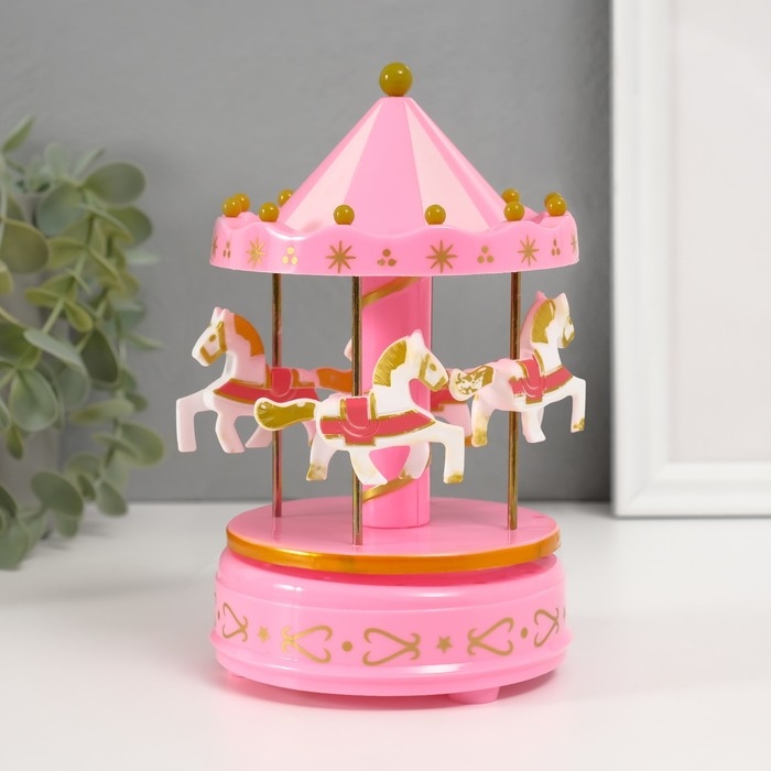 Сувенир музыкальный механический "Карусель 4 лошадки" розовая 9,6х9,6х15,5 см