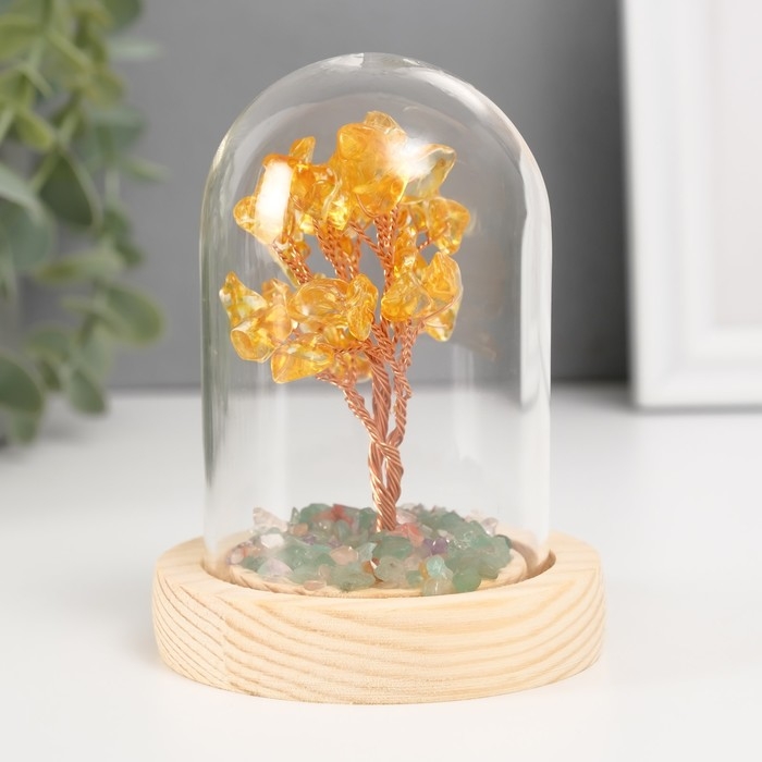 Сувенир "Денежное дерево в колбе" жёлтый 36 камней 7,8х7,8х10 см