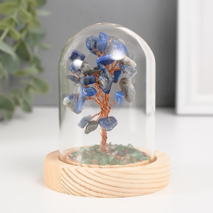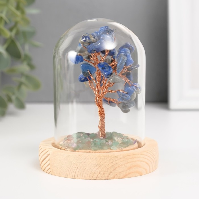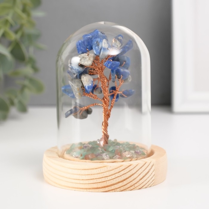 Сувенир "Денежное дерево в колбе" синий 36 камней 7,8х7,8х10 см