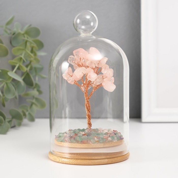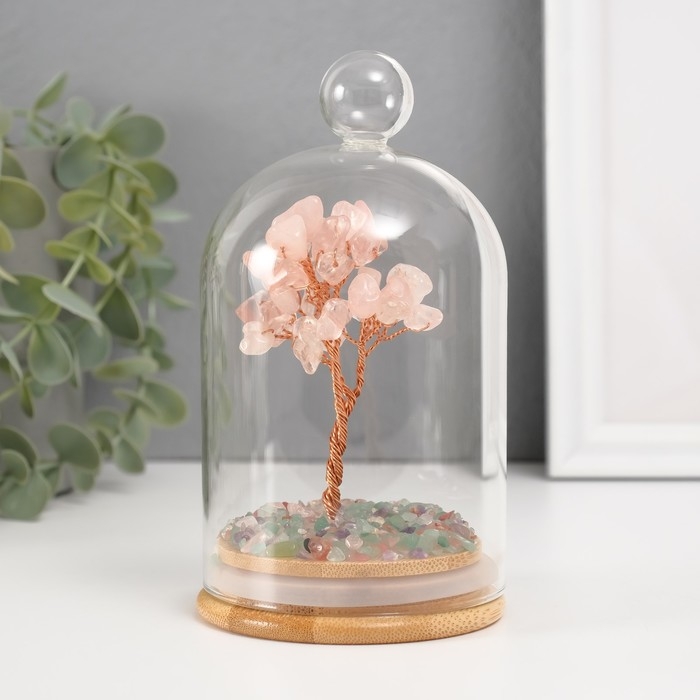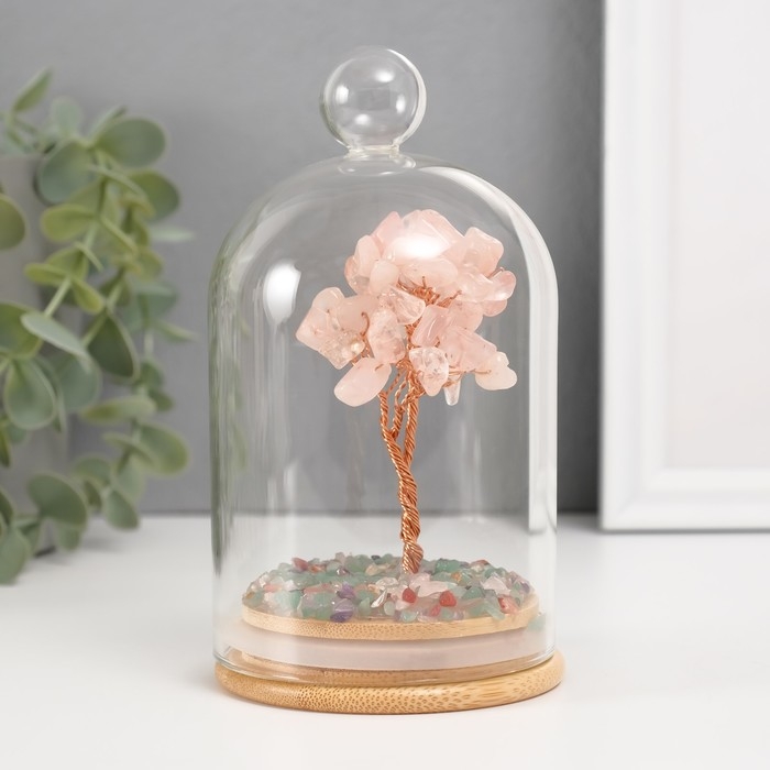 Сувенир "Денежное дерево в колбе с ручкой" розовый 36 камней 8,2х8,2х13 см