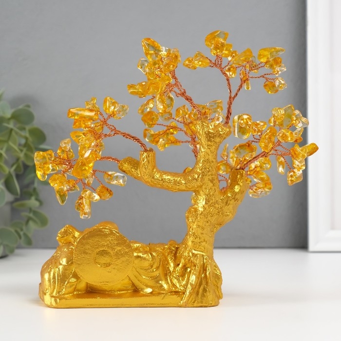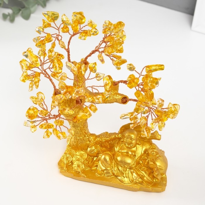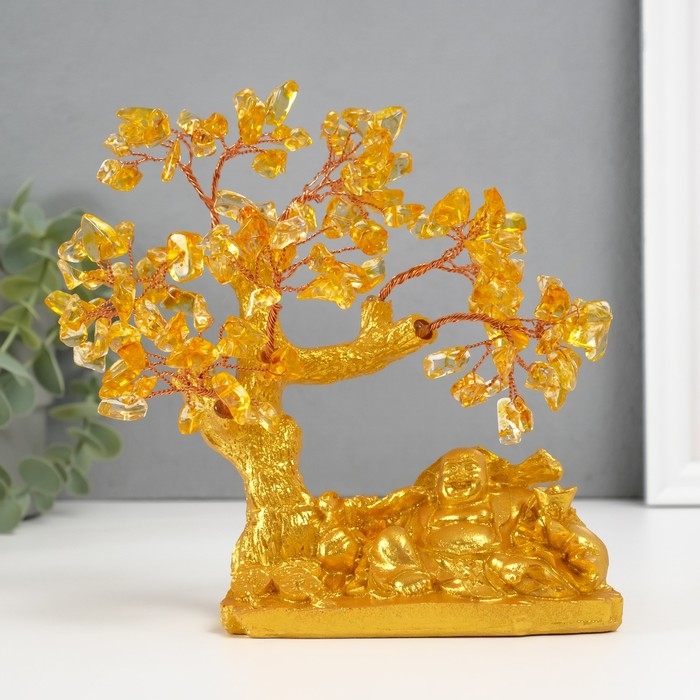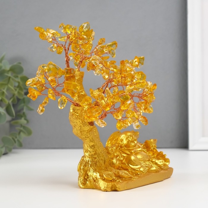 Сувенир бонсай "Хотей с богатствами у денежного дерева" жёлтый 120 камней 13,8х6,2х16,5 см 1047139