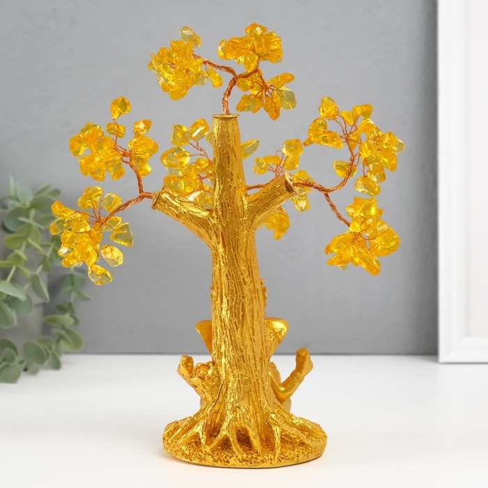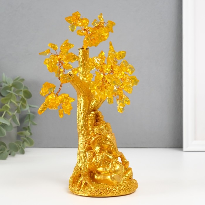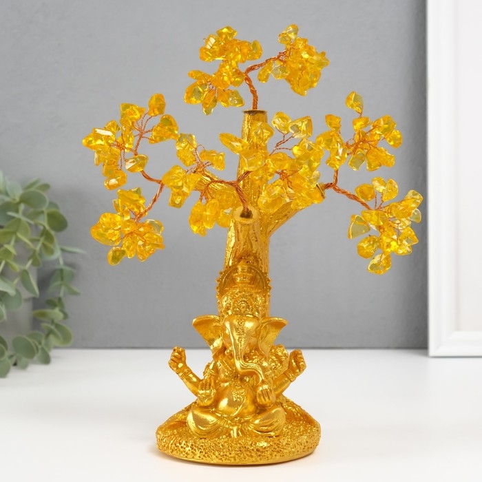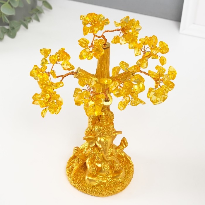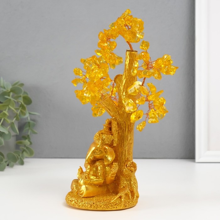 Сувенир бонсай "Ганеша у денежного дерева" жёлтый 120 камней 9х9х23,5 см