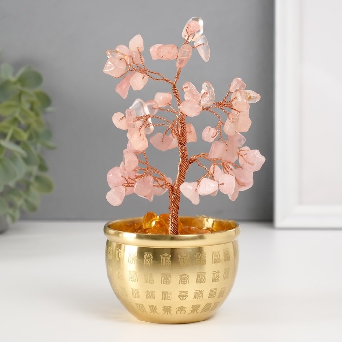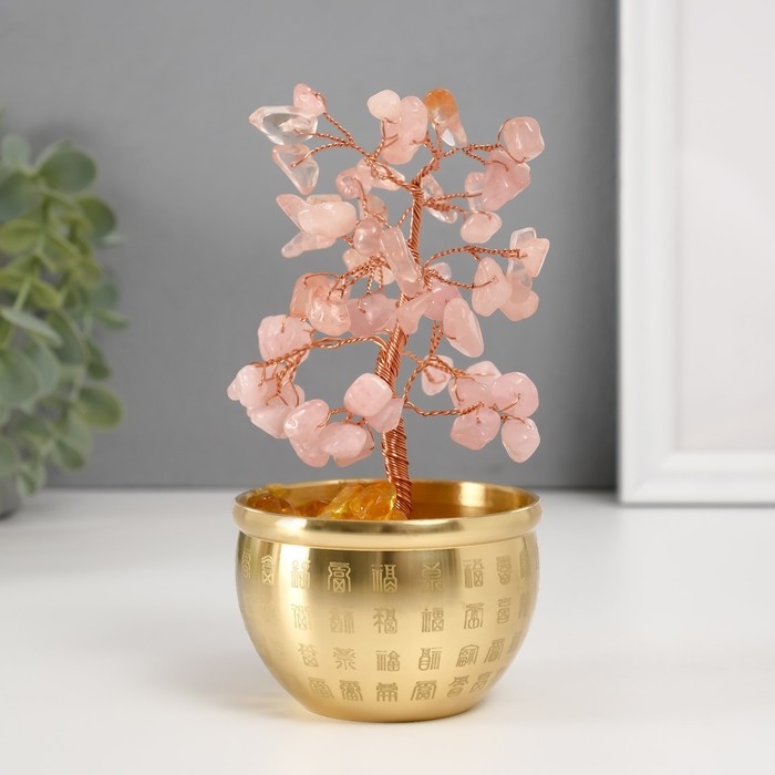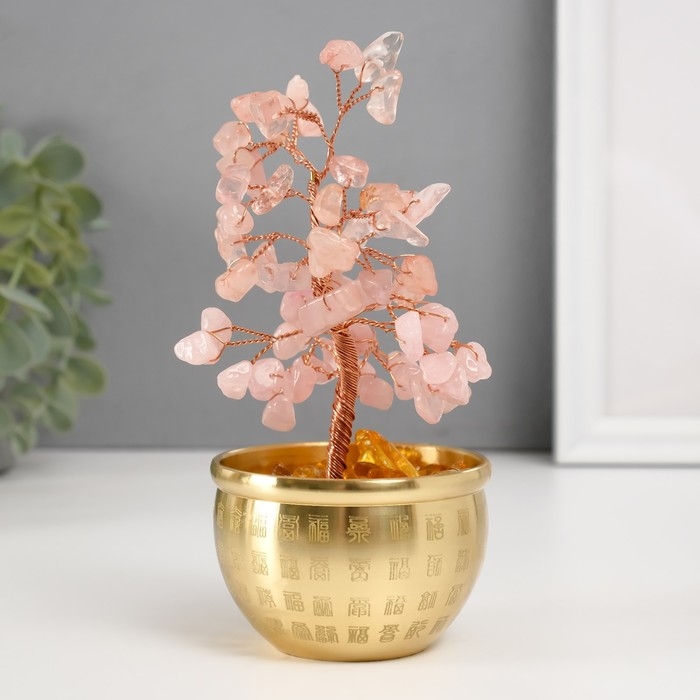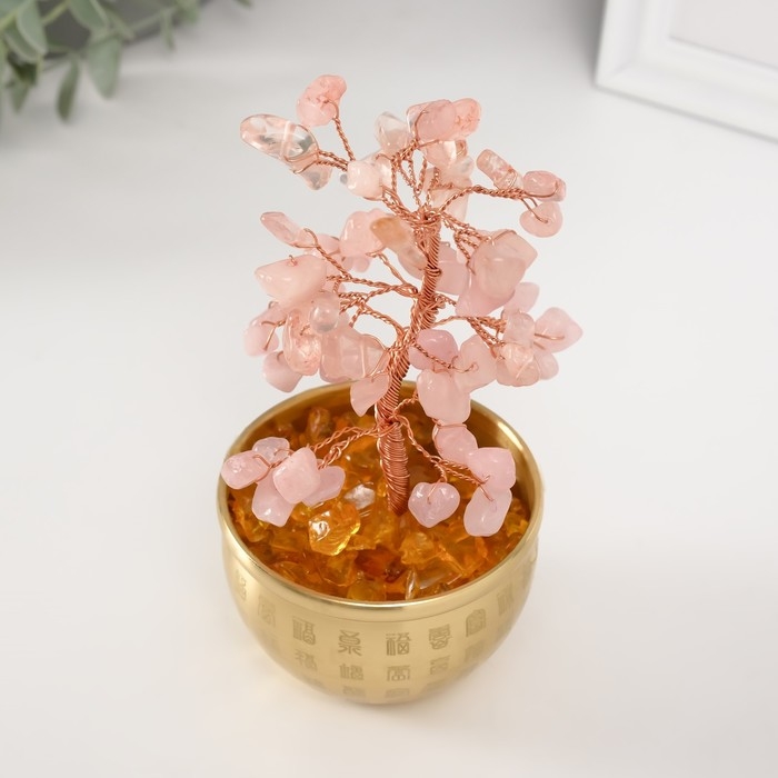 Сувенир бонсай "Денежное дерево в чаше изобилия" розовый 60 камней 7,2х7,2х15,5 см