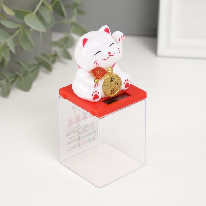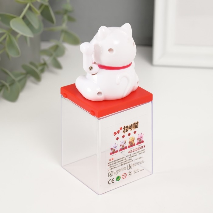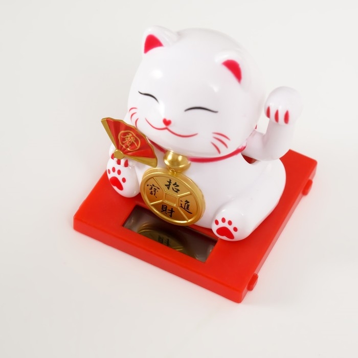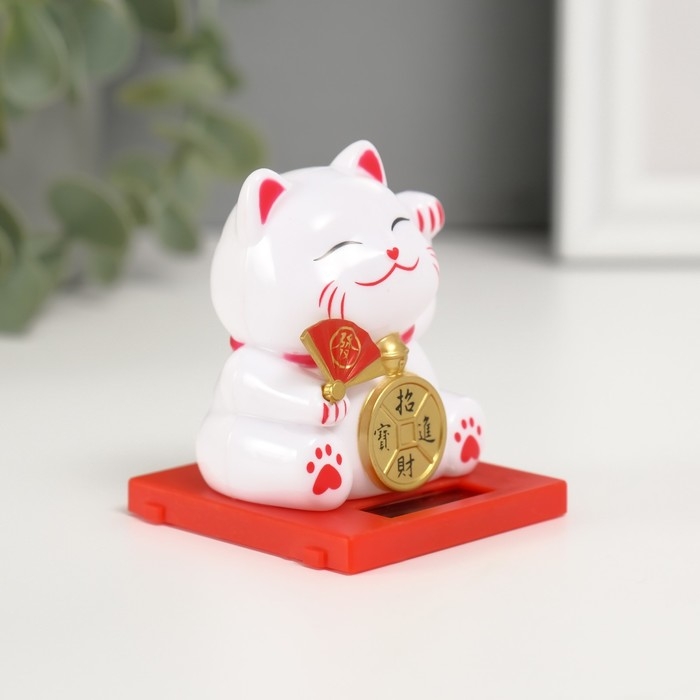 Маятник пластик "Белый Манэки-нэко с веером и монеткой" 5х5х5 см