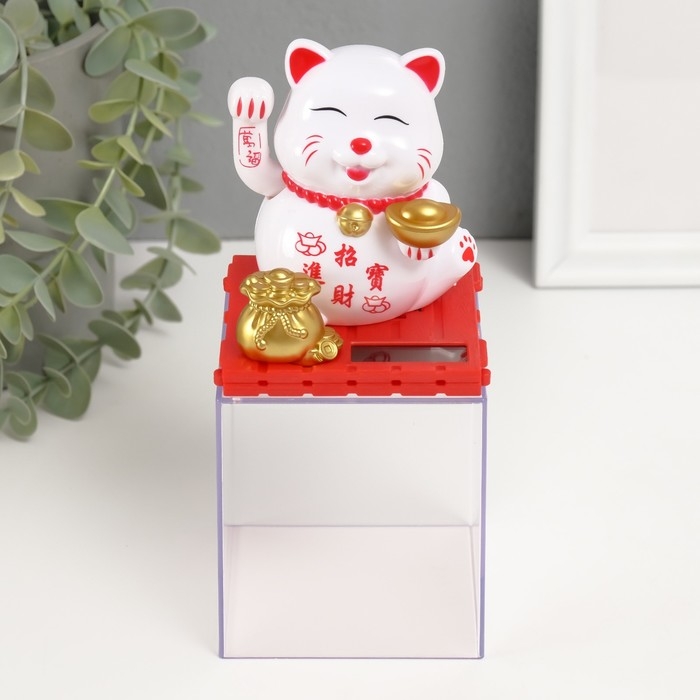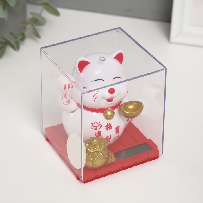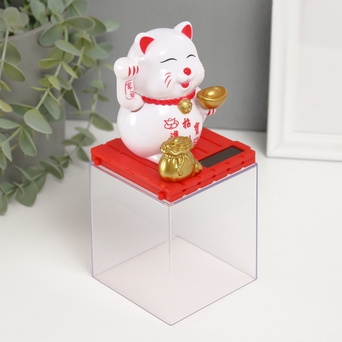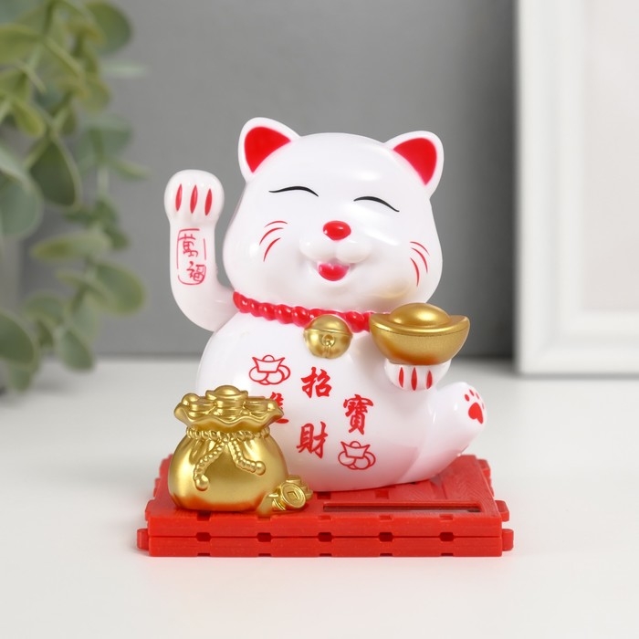 Маятник пластик "Белый Манэки-нэко со слитком Ямб" 8х8х8,5 см