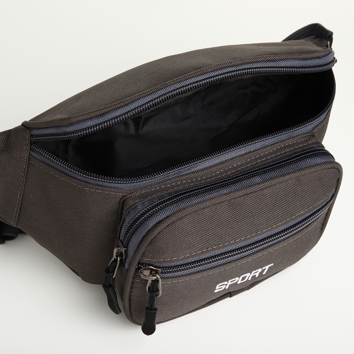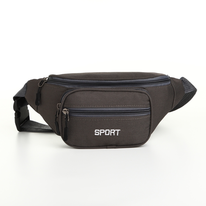 Сумка поясная на молнии, 2 наружных кармана, цвет серый