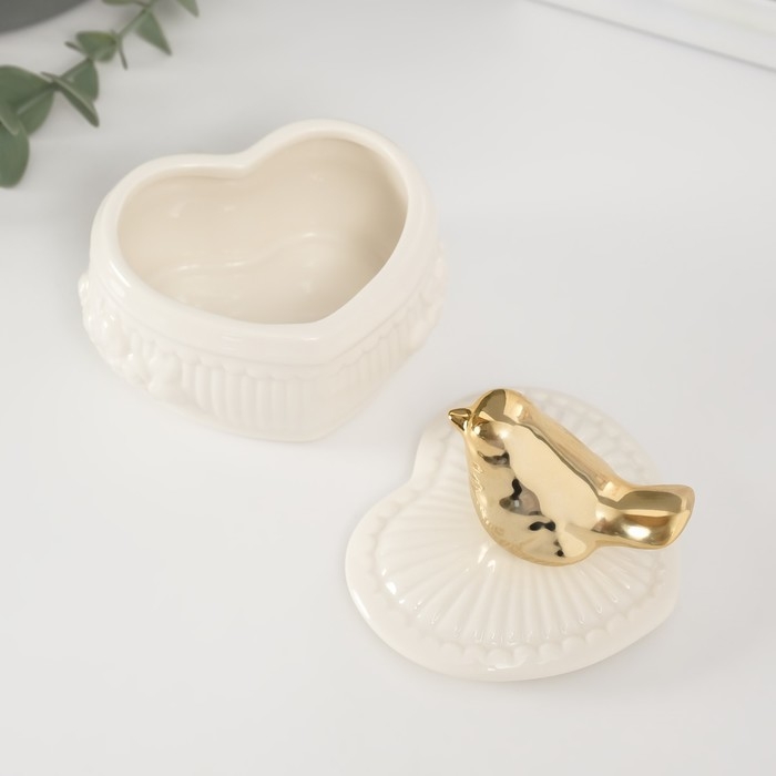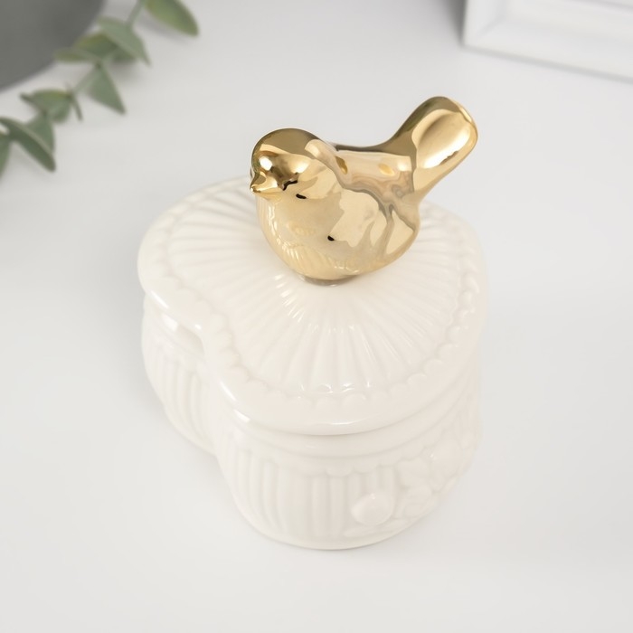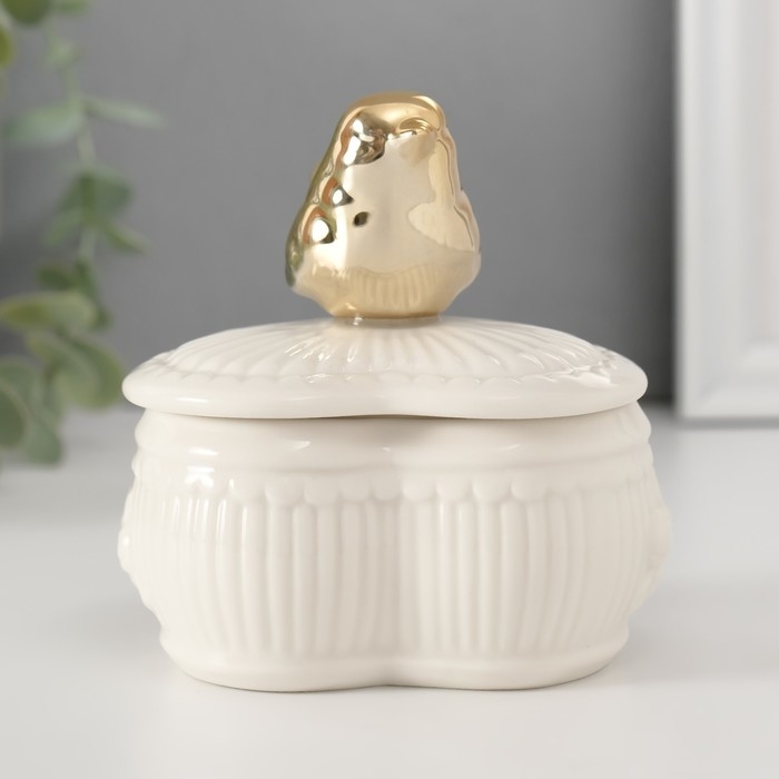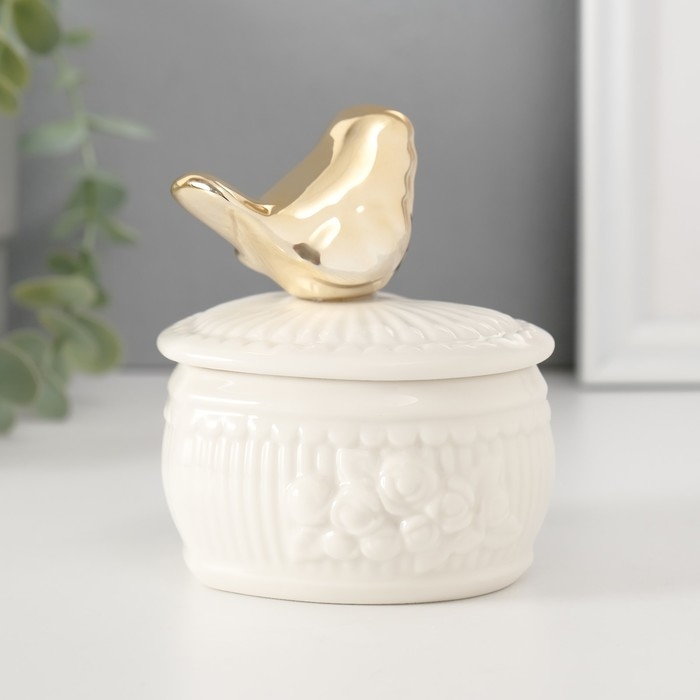 Шкатулка керамика "Птичка прованс" белая 9,5х9,3х9 см