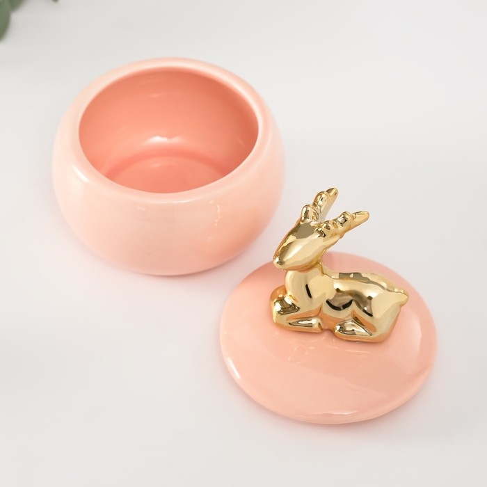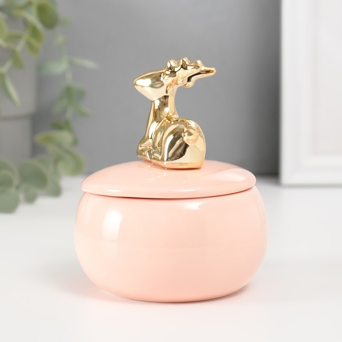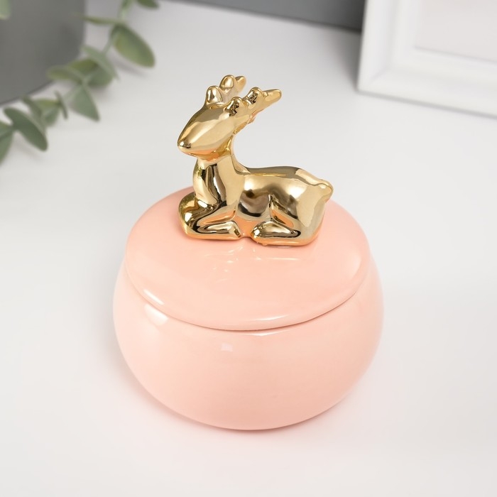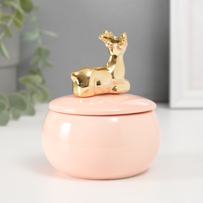 Шкатулка керамика "Золотой олень" розовая 8х8х10 см