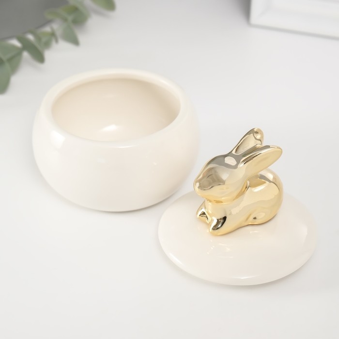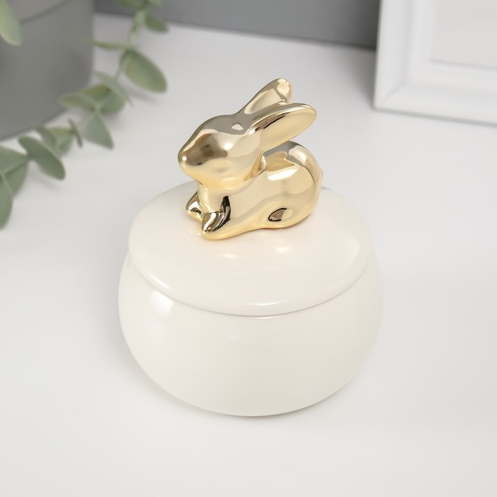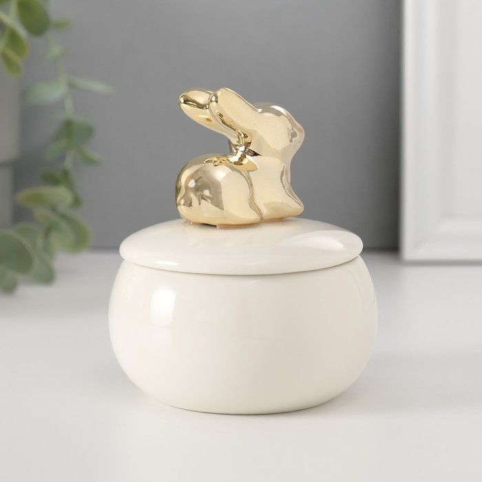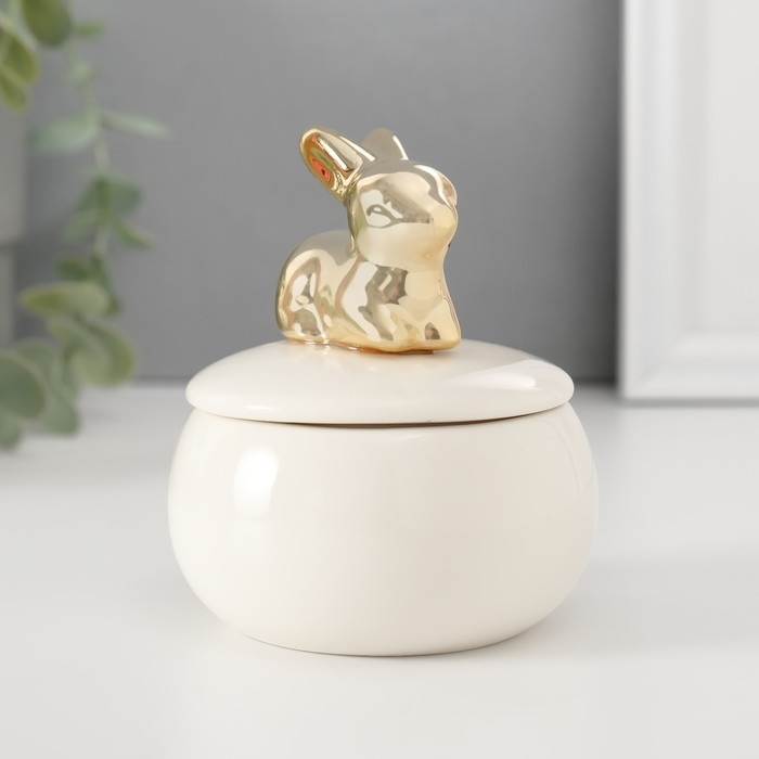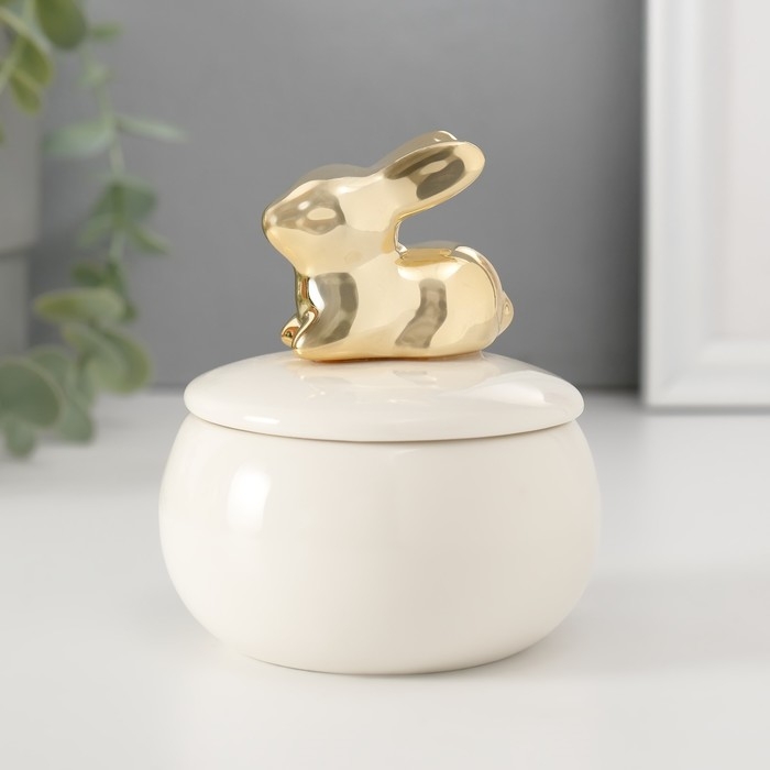 Шкатулка керамика "Золотой кролик" белая 8х8х10 см