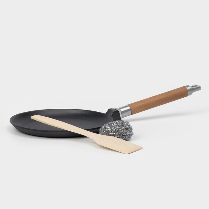 Сковорода блинная чугунная Wild Kitchen, d=22 см, лопатка и губка в комплекте