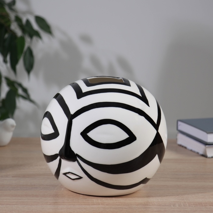 Ваза керамика настольная "Пикассо" (ручная роспись) маска, 18х18 см, чёрно-белый