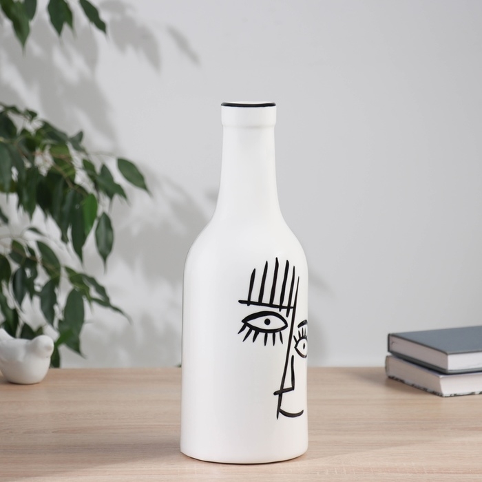 Ваза керамика настольная "Пикассо" (ручная роспись) улыбка, 33,5х12 см, чёрно-белый