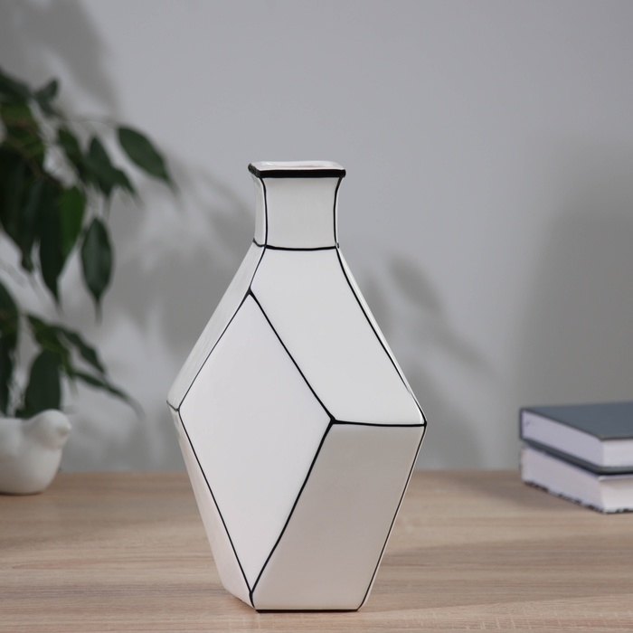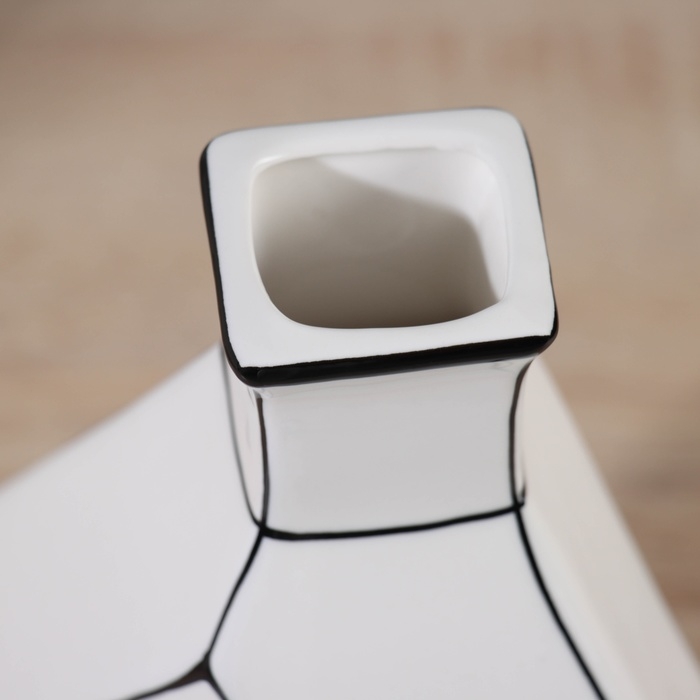 Ваза керамика настольная "Пикассо" (ручная роспись) грани горлышко, 24х16 см, чёрно-белый