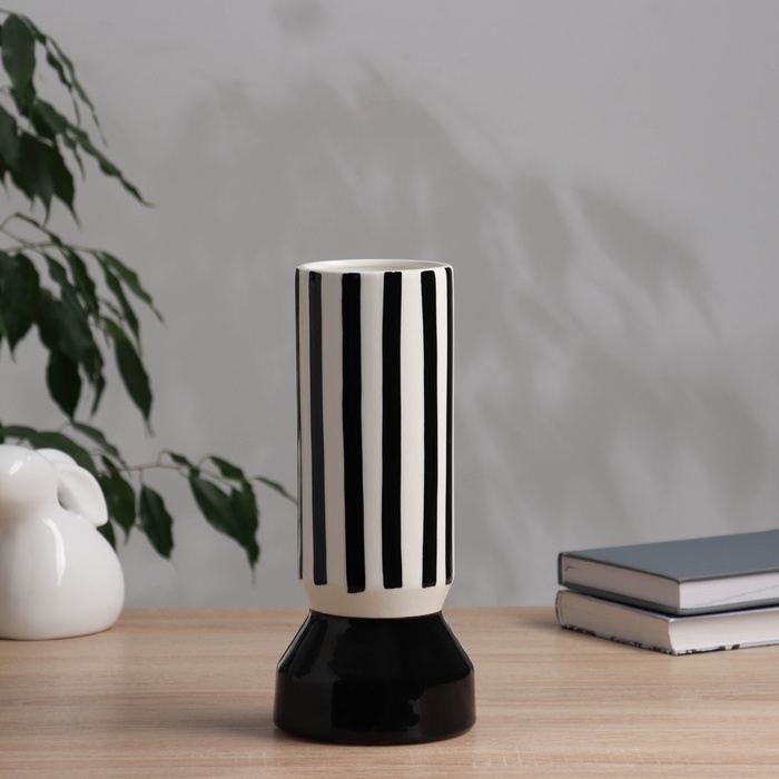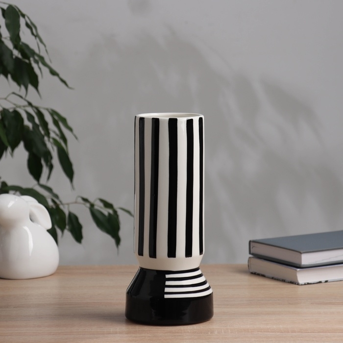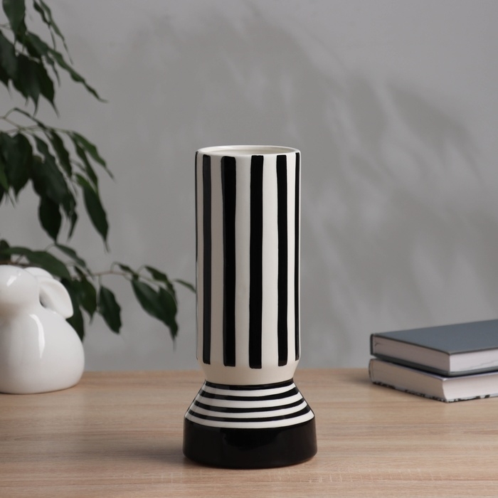 Ваза керамика настольная "Пикассо" (ручная роспись) полосы узор, 26х11 см, чёрно-белый