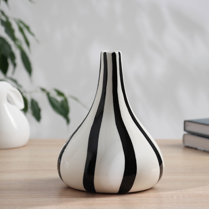Ваза керамика настольная "Пикассо" (ручная роспись) широкие полосы, 19х14 см, чёрно-белый