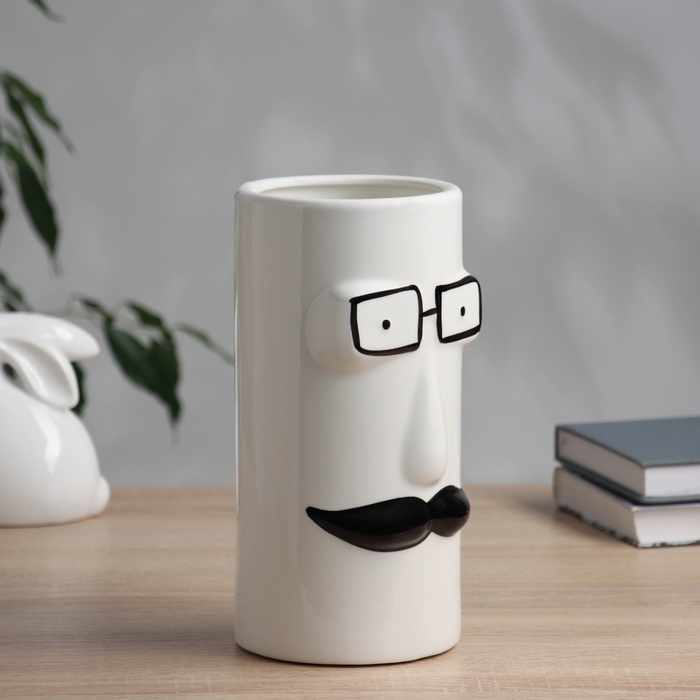 Ваза керамика настольная "Пикассо" (ручная роспись) умник, 23х11 см, чёрно-белый